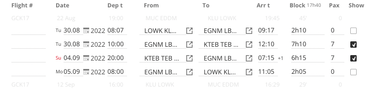 To retrieve emptyβleg data via the API, each positioning/empty leg must be enabled manually in the FL3XX web app. This ensures that only authorized empty legs are exposed for external booking.